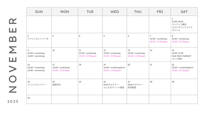 オープン日以外のご来店はContactからご予約をお願いいたします